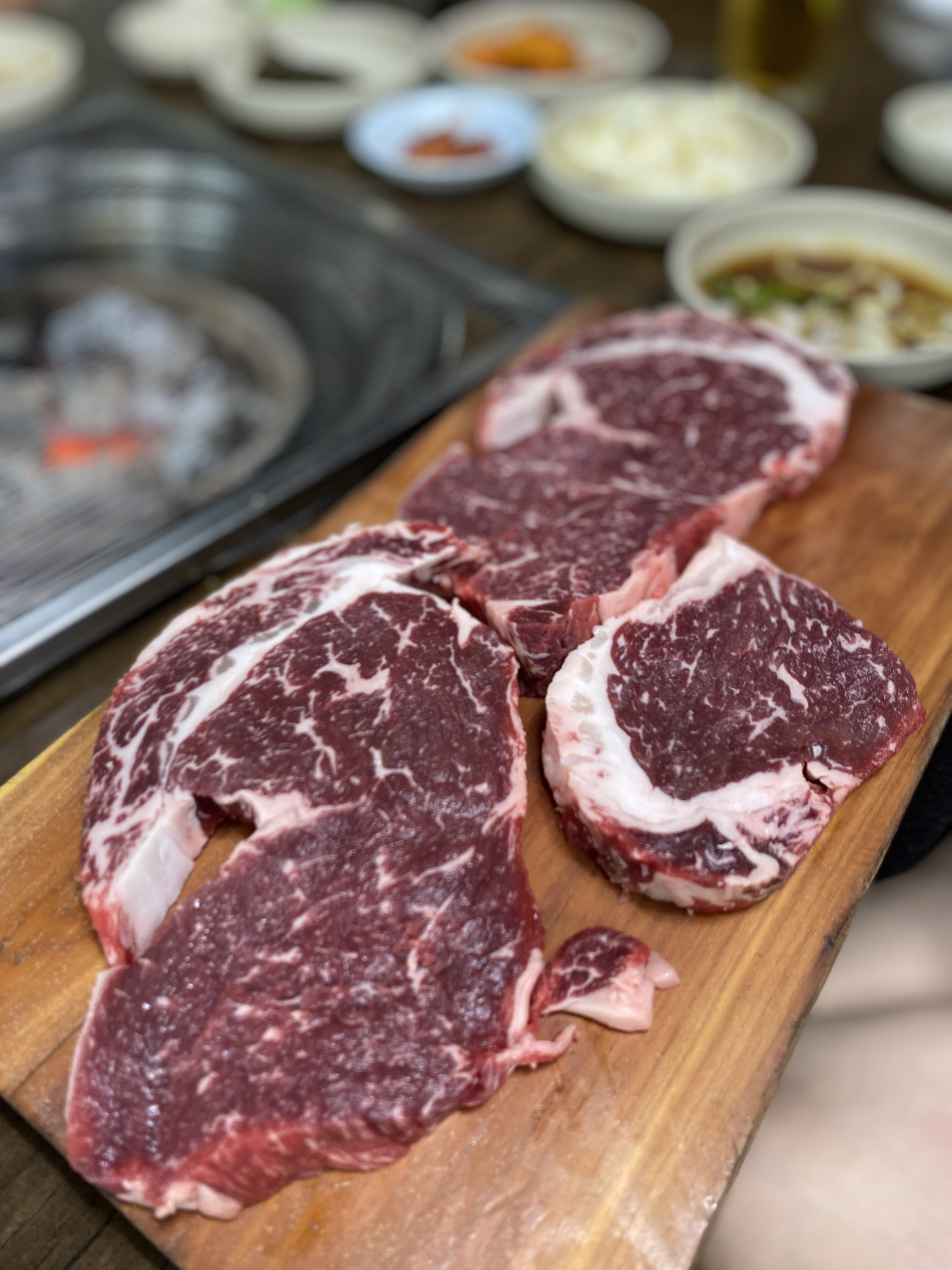 어떤게 맛있는지 먹어보고 맛있는 부위를 더 시키기 위해 주문했던 모듬고기이다